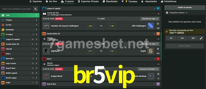 O br5vip oferece uma grande seleção de opções de apostas em e-sports com probabilidades competitivas